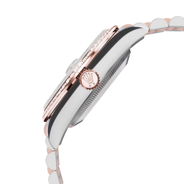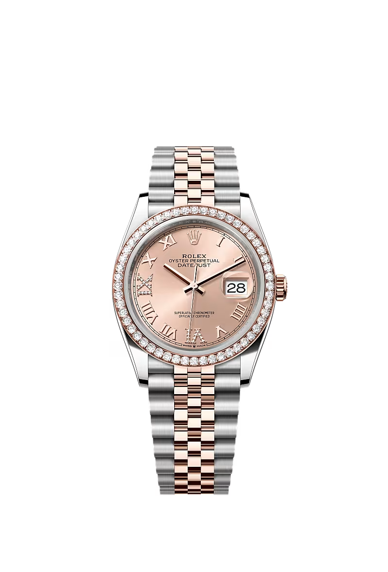 تتميز ساعة أويستر بربتشوال ديت جست ٣٦ هذه المصنوعة من فولاذ أويستر ستيل وذهب إيفروز بمينا وردي مرصّع بالألماس وبسوار جوبيلي (Jubilee).