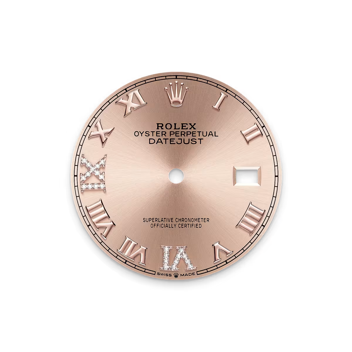 يتميّز هذا المينا بـالأرقام الرومانية VI وIX من الذهب عيار ١٨ قيراطًا، مرصّعة بــ ٢٤ حبة ألماس. يخلق التشطيب الشمسي انعكاسات ضوئية دقيقة على العديد من المواني في مجموعة ساعات أويستر بربتشوال. يتم الحصول عليه باستخدام تقنيات الفرشاة المتقنة ونحت الأخاديد التي تمتد إلى الخارج انطلاقًا من مركز المينا.