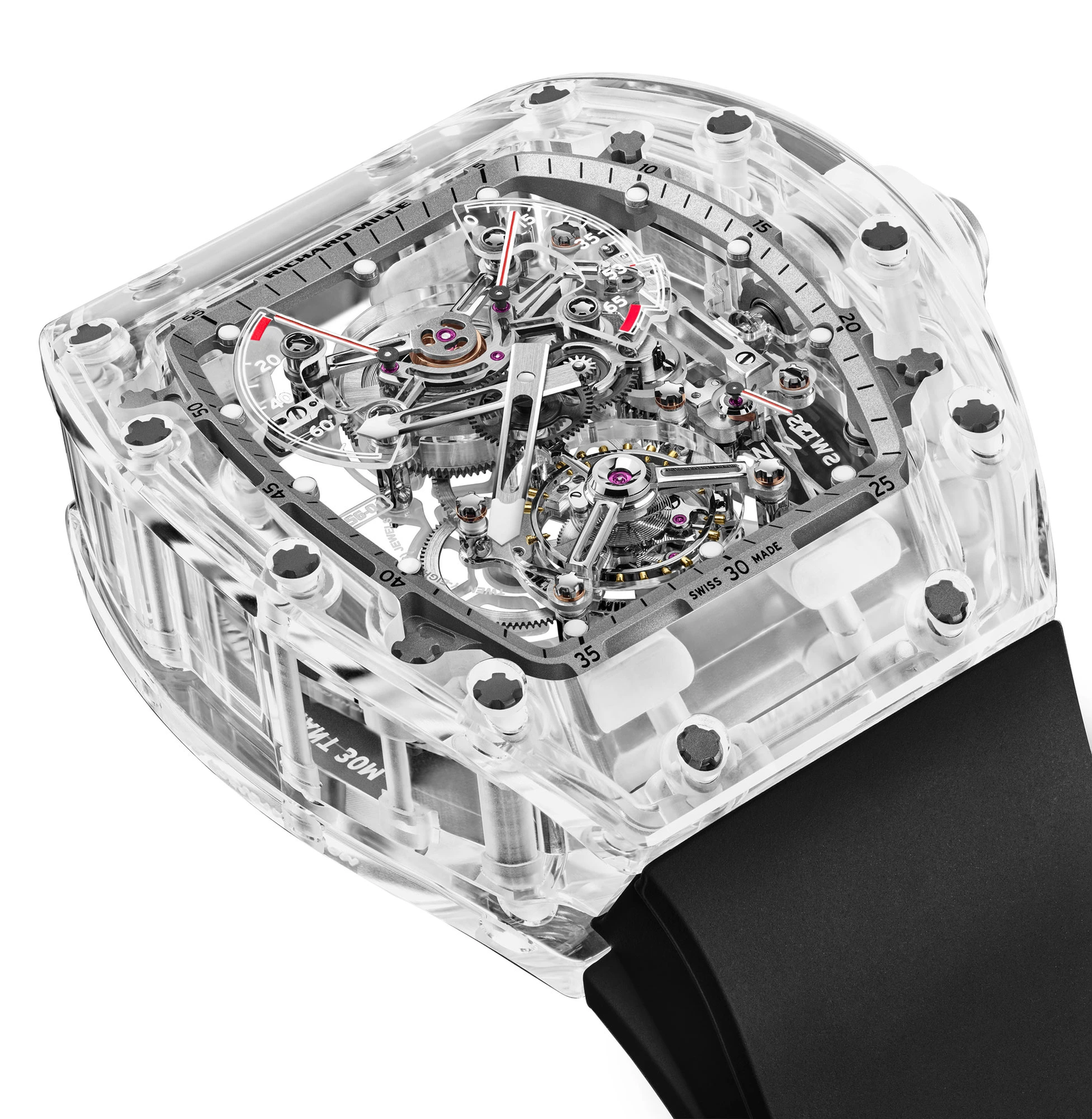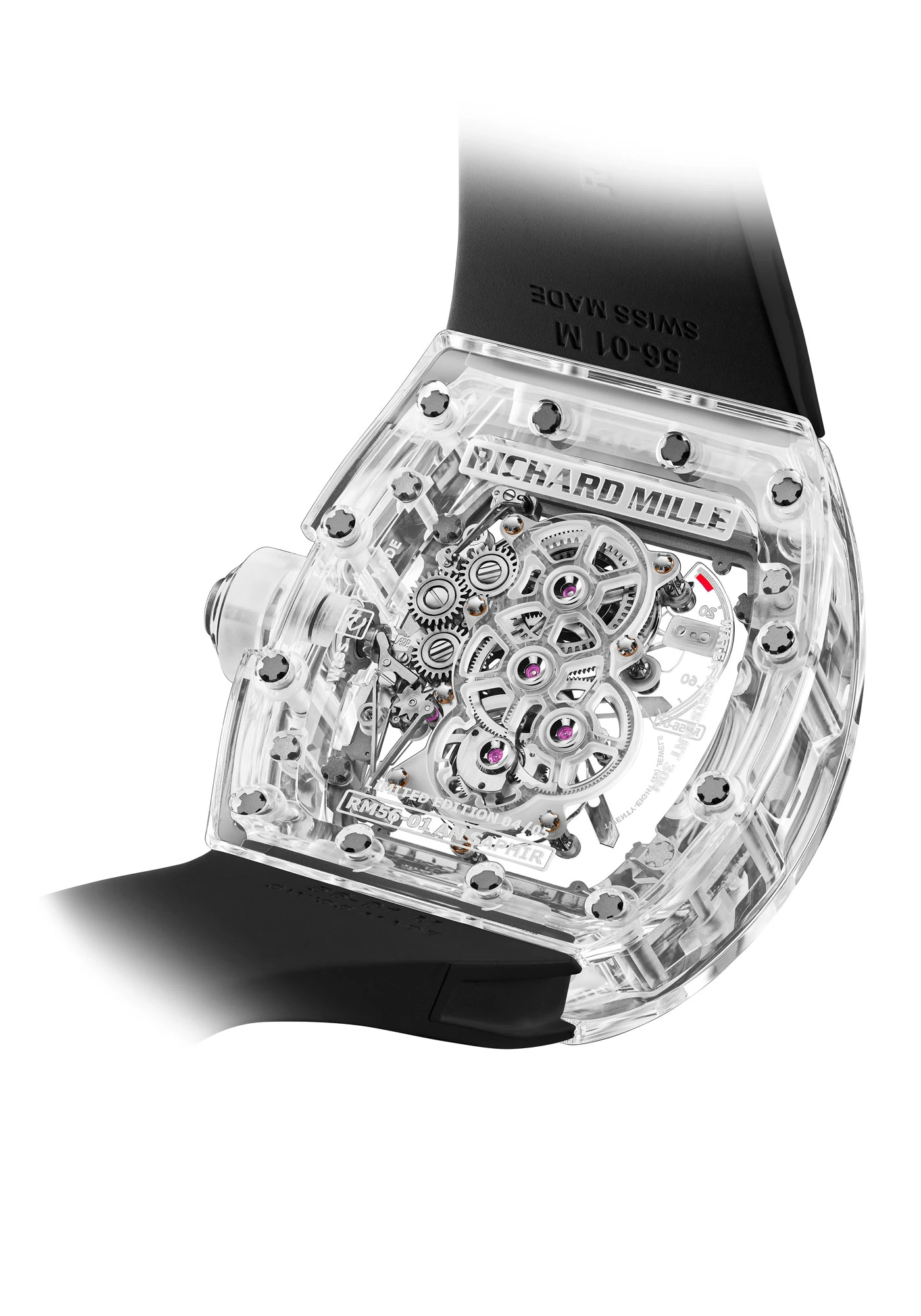 مثّل تشكيل مثل هذه المكونات أكبر تحدي واجهه ريتشارد ميل، وما يزيد الأمر صعوبة هو أنّ عملية تصنيع الياقوت حسّاسة بشكل استثنائي. على الرغم من قوته الشديدة، إلا أن الياقوت لا يسمح حتى بأي خطأ أثناء الطحن والقطع. استغرق إعداد علبة في مثل هذه الجودة عملاً عى الآلات دام لأكثر من 1000 ساعة، من بينها 430 ساعة تم تخصيصها للتّشكيل المسبق لمكونات العلبة، و350 ساعة أخرى لتلميع العلبة بأكملها. يجب أن تكون أدوات القطع مصمّمة بشكل خاص ومزوّدة بالماس.