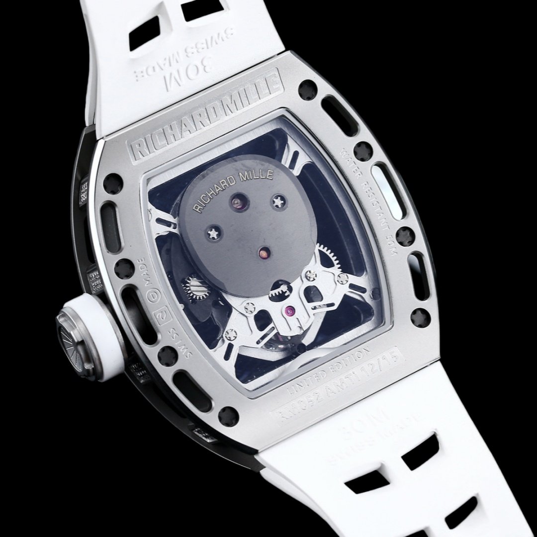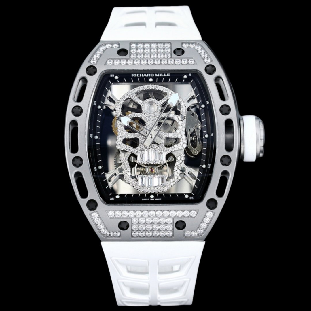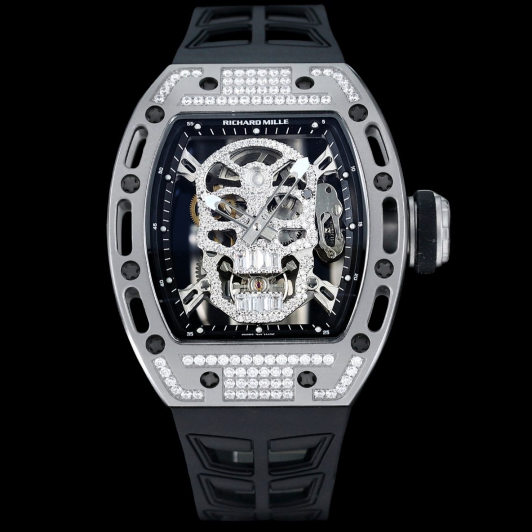 سلسلة RM052، أحدث نسخة مطورة من سلسلة Ghost Head، سلسلة Skull، علبة من الفولاذ المصقول، مزودة بحركة ميكانيكية أصلية مستوردة، مما يسلط الضوء على النمط الرياضي لهذه الساعة. من خلال المرآة المضادة للوهج، يمكنك رؤية الحركة المجوفة المعلقة. تصميم الجمجمة الجريء والفريد هو الاستبداد ولافت للنظر. لقد استحوذت بنجاح على قلوب العديد من عشاق الساعات. تخلق صورة الجمجمة عالمًا للساعة ليس جامدًا بالنسبة للتيار السائد.